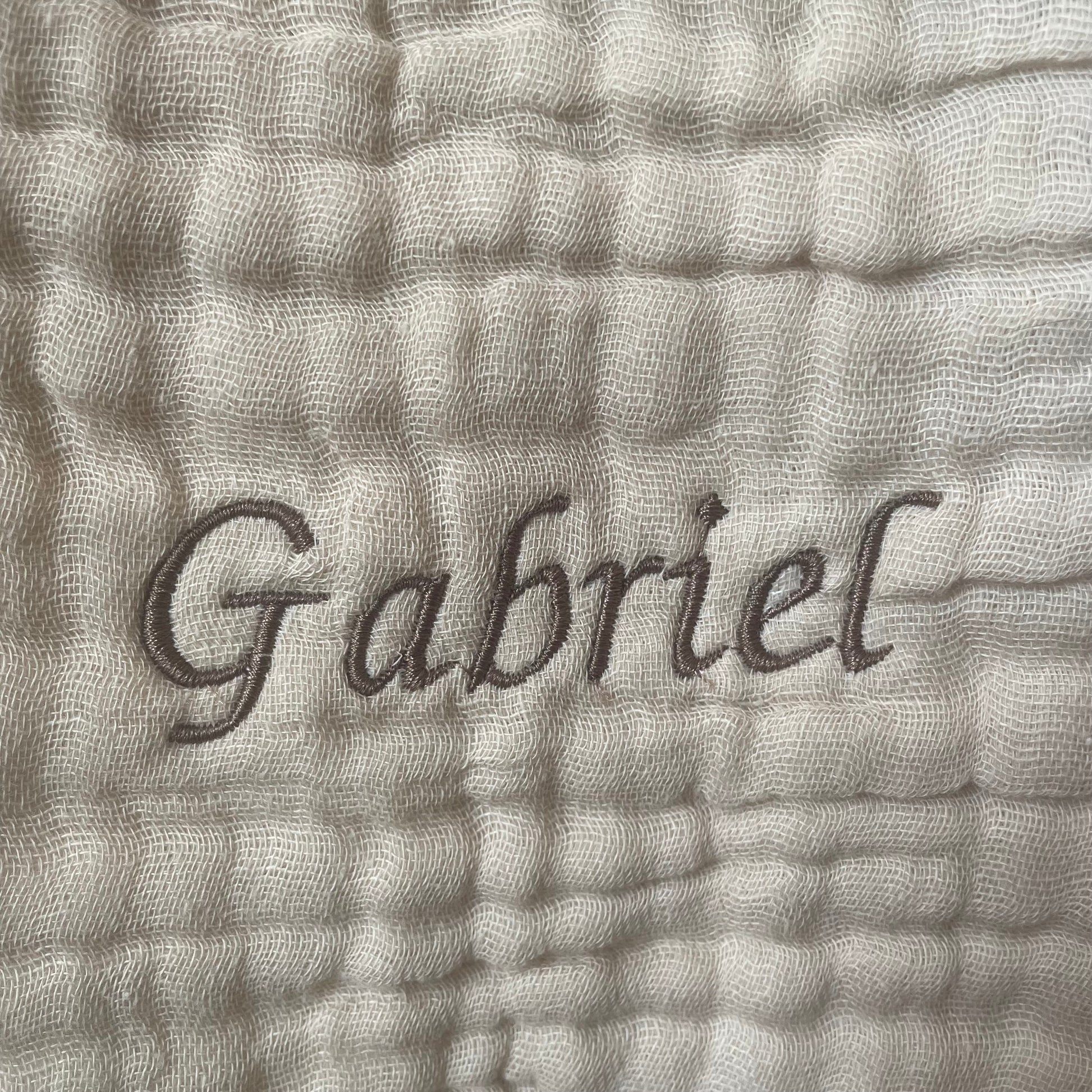Le gaze de coton est froissé par nature, il aime être séchée à plat. Le repassage est toutefois possible, sauf sur le prénom.